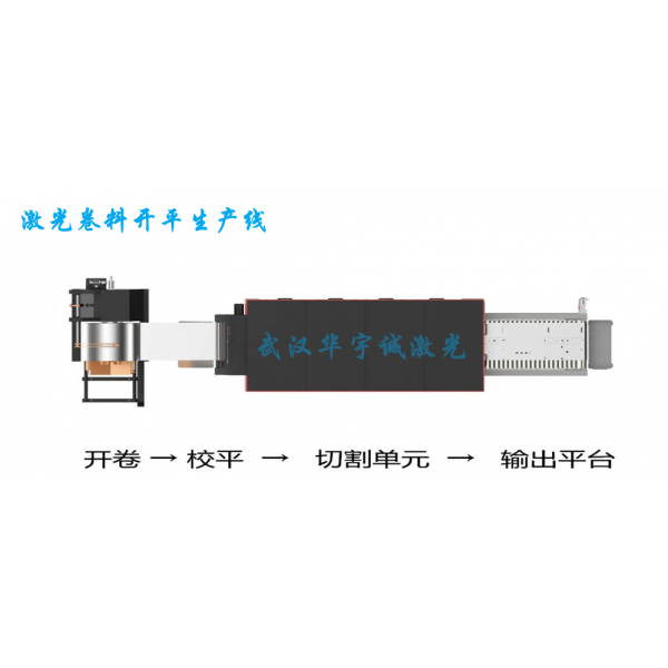 整套采用激光切割技術(shù)的開卷落料生產(chǎn)設(shè)備,由上料臺車、開卷機、校平機、緩沖活套、伺服送料機、激光切割裝置、切割平臺、廢料處理系統(tǒng)、液壓氣動系統(tǒng)及電氣控制系統(tǒng)組成。
