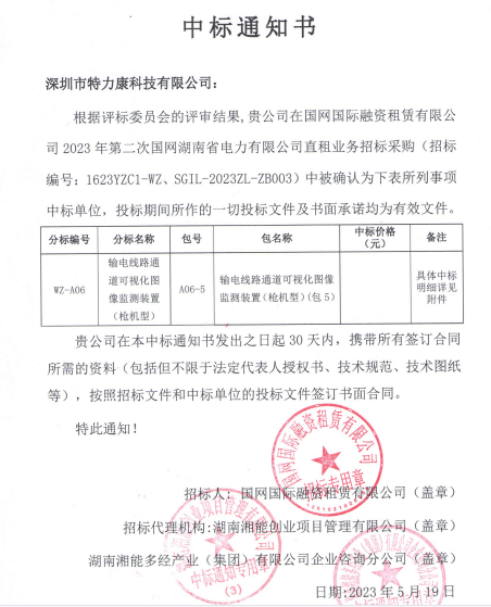 特力康中標(biāo)國(guó)網(wǎng)黑龍江送變電工程公司的2024年度第18次物資類(lèi)競(jìng)爭(zhēng)性談判采購(gòu)項(xiàng)目——慶陽(yáng)驅(qū)鳥(niǎo)器物資框 特力康中標(biāo)國(guó)網(wǎng)甘肅省電力公司省管產(chǎn)業(yè)單位2024年第五次物資競(jìng)爭(zhēng)性談判授權(quán)采購(gòu)項(xiàng)目 中標(biāo)喜訊:深圳市特力康科技有限公司成功入圍許繼集團(tuán)綜合能源公司輸電線路視頻在線監(jiān)測(cè)裝置模塊集采項(xiàng)目 中標(biāo)喜訊:特力康成功中標(biāo)國(guó)網(wǎng)重慶市電力公司渝中一片區(qū)項(xiàng)目 特力康成功中標(biāo)國(guó)網(wǎng)天津市電力公司2024年第二次?物?資招標(biāo)項(xiàng)目 特力康中標(biāo)國(guó)網(wǎng)安徽省電力有限公司蕪湖供電公司2024年3月非物質(zhì)采購(gòu)項(xiàng)目 破解巡檢難題:貴州電力用特力康 AI 微拍裝置,精準(zhǔn)捕捉線路隱性隱患 精準(zhǔn)捕捉 “微氣象”:浙江電力用特力康預(yù)警系統(tǒng)筑牢電網(wǎng)氣候防線 守護(hù) “電力咽喉”:湖南電力投用百套特力康三跨 4G 監(jiān)控球,筑牢安全防線 貴州電力裝特力康電網(wǎng)架空線路覆冰監(jiān)測(cè)系統(tǒng),精準(zhǔn)防冰保電網(wǎng)過(guò)冬? 百套落地山西電網(wǎng)!特力康輕量化輸電架空線路監(jiān)拍裝置,筑牢輸電安全網(wǎng) 破解采空區(qū)隱患:山西電力裝特力康通用型監(jiān)測(cè)裝置,守鐵塔穩(wěn)運(yùn)行 寧夏配電線路安裝了我司防外破電子化智能警示牌